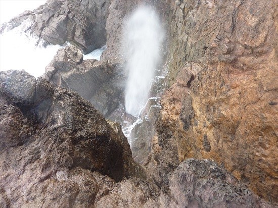 波が岩に打ち付け、とても激しく水しぶきが上がる場所です。